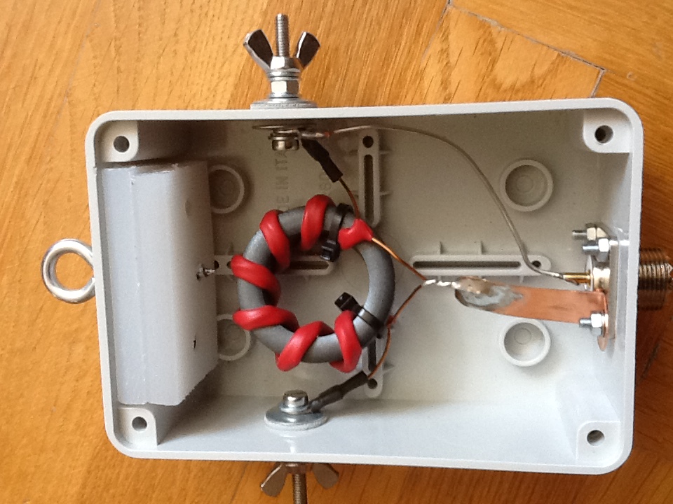 Elkeszult a klub szamara a balun, most mar minden megvaltozott az eredetileg megrendelt balunon: a T200-2 le lett cserelve ferrit magra amit Feri, 5ZF ajanlott, a doboz ki lett cserelve, egy rosz forrasztas ezzel meg lett szuntetve, es nem beszelve a hibas bekotes korrigalasarol sem. Ettol a cegtol tobbet ne rendeljetek semmit. Az egyetlen erteke az antennanak a huzal maga.