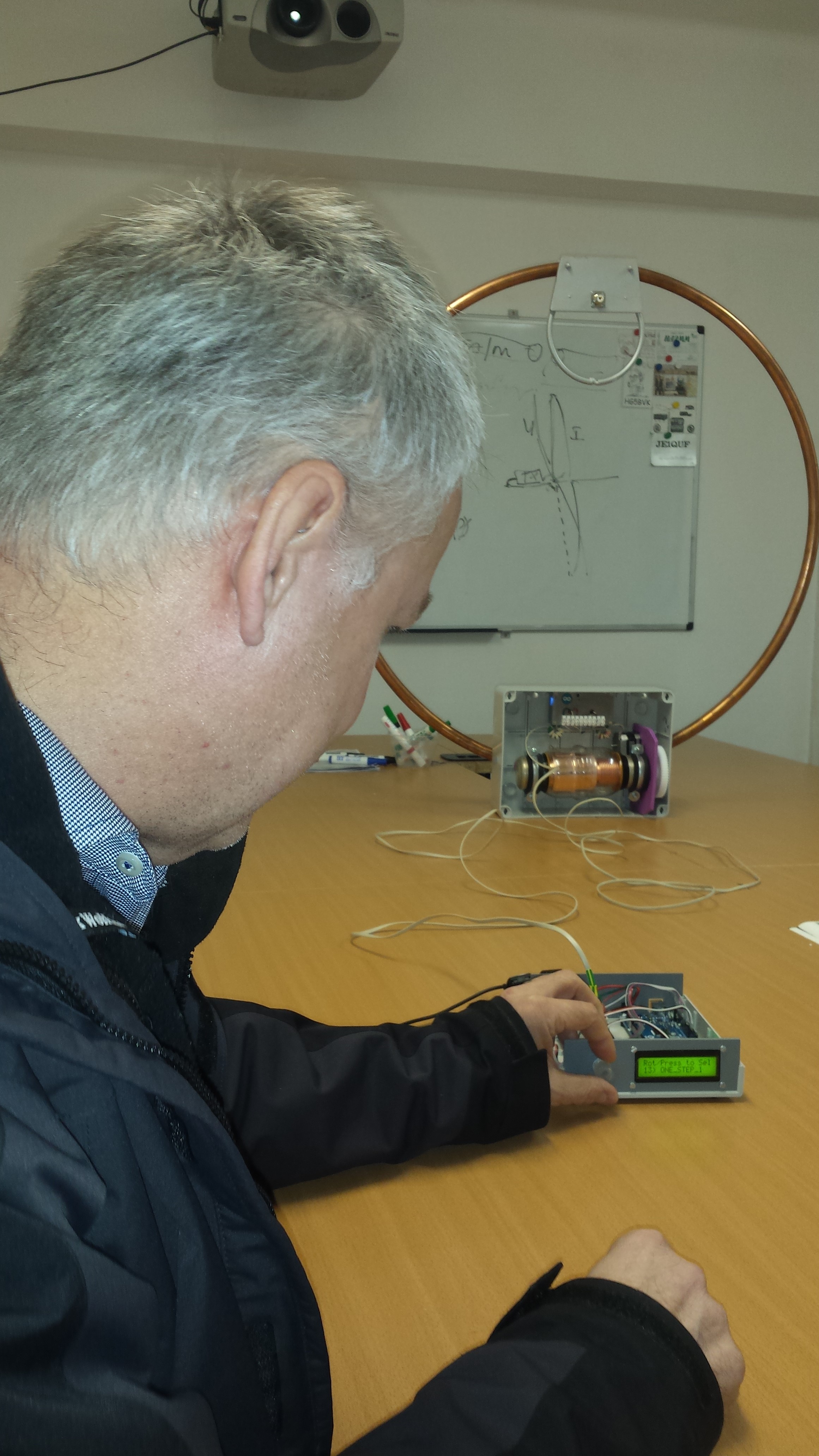 HA5CLF István bemutatta Egy komolyabb Magnetic Loop Antennáját élőben az okatatási helyiségben.