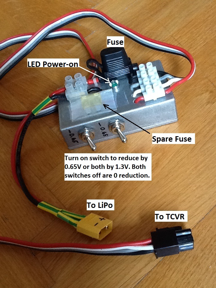 A TCVR mutatja a pillanatnyi feszultseget, ha le megy aa fesz akkor bekapcsolom az egyok kapcsolot majd a masikat es igy mindig megfelelo a feszultseg. A hatrany, hogy tul nehez a kutyu ahogy kiviteleztem.