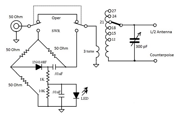 - Az antenna sávváltás a megfelelő huzal hosszúság kiválasztásával történik.