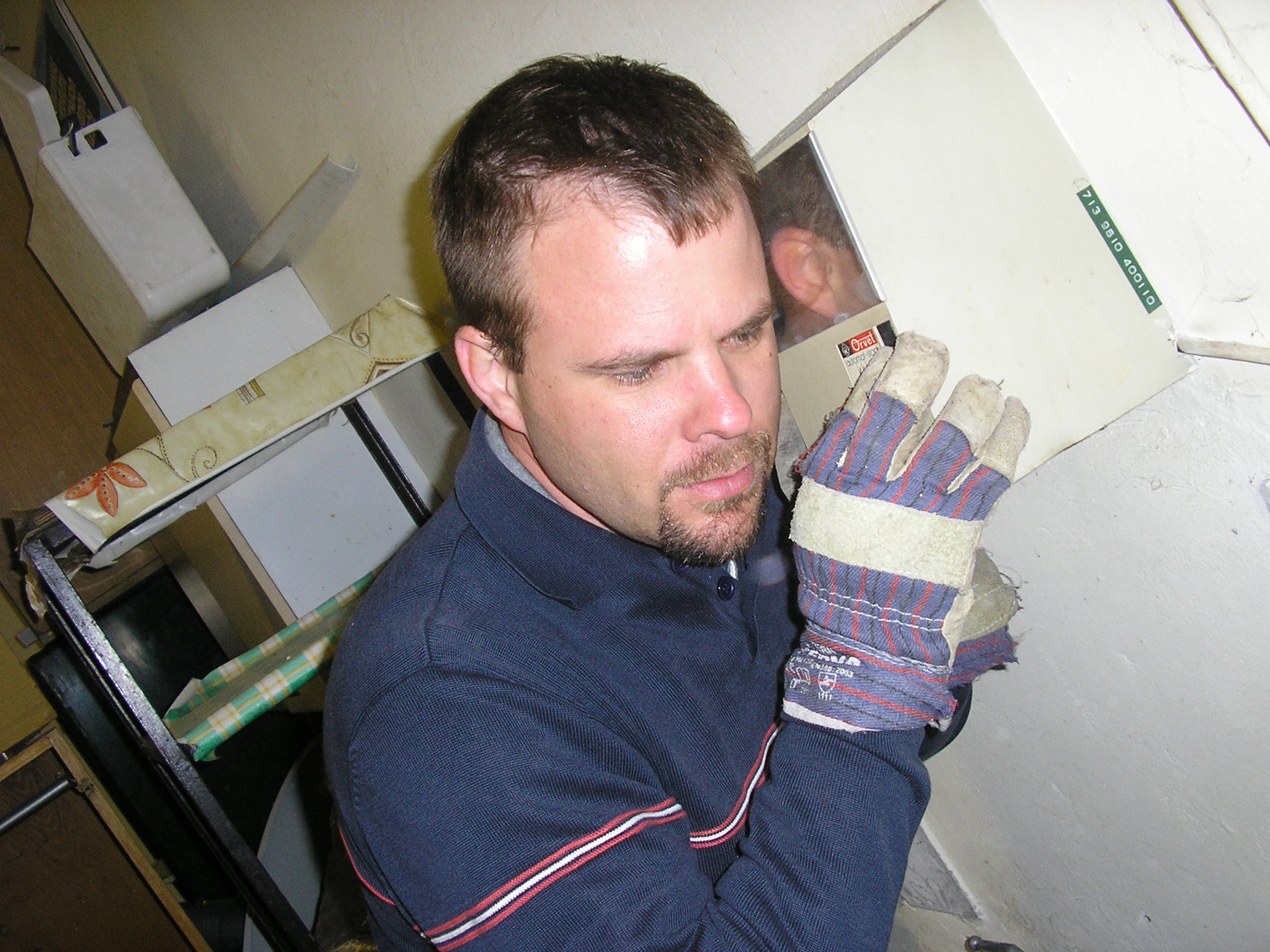 A tűzjelző rendszer tesztelése ez egyértelmű: Itt viszont már egy kissé elgondolkozhatunk, vajon mit hallgatózik a tükörben védőkesztyűben?: